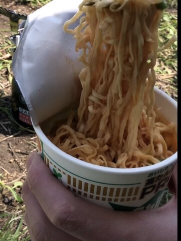 外で食べるカップ麺、至福です…。