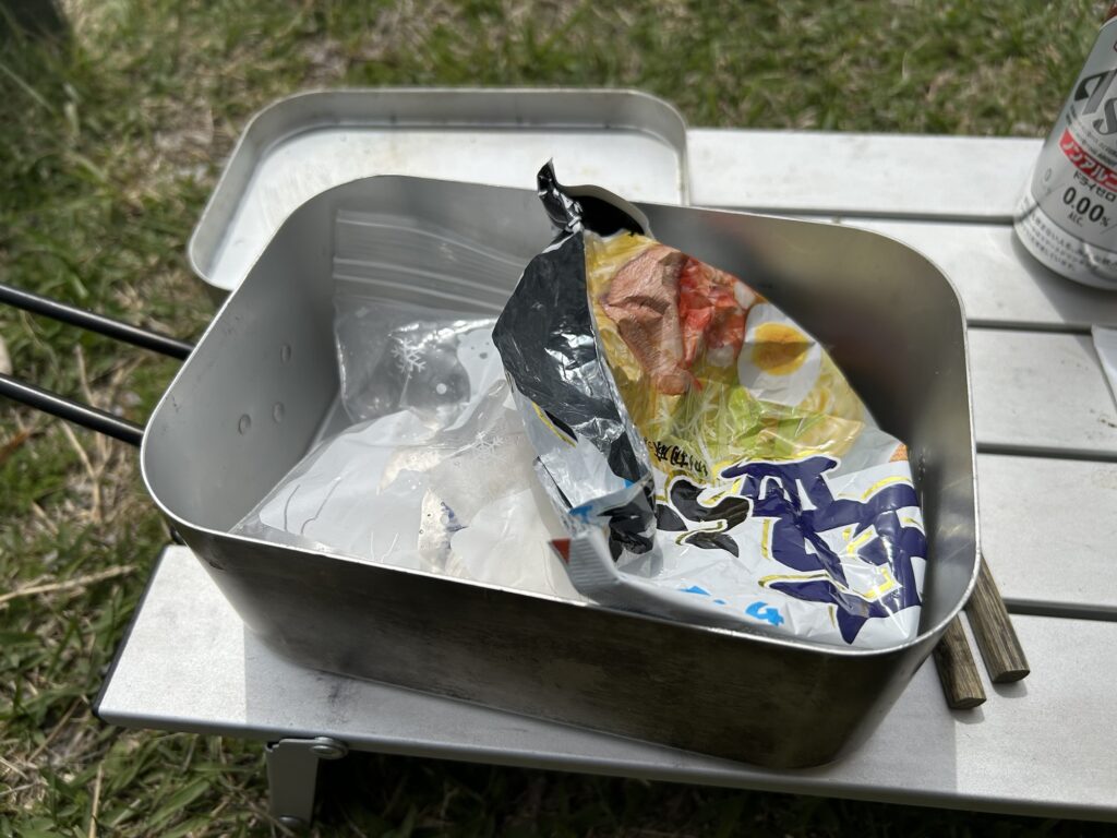 食事で出たゴミはメスティンに入れて、持ち帰ります。